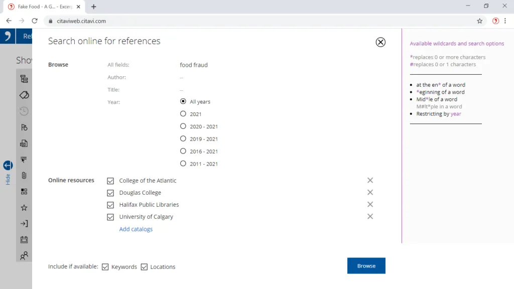 Търсете в онлайн бази данни в Citavi или във вашия браузър